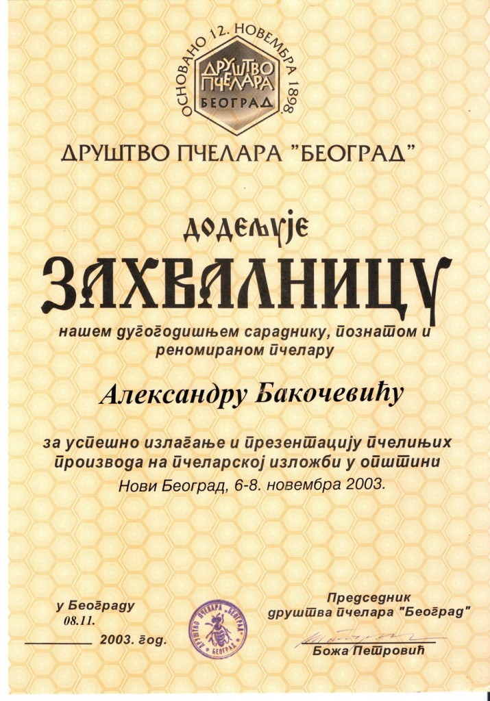 Our work and dedication over the years have been recognized with numerous diplomas, medals, and certificates of appreciation for our contribution to beekeeping development. Recognizing market demands and wanting to keep pace with the times, in early 2003 the need arose to transform PG “PČELINJACI BAKOČEVIĆ” into S.Z.T.R. “MEDOMIKS”.